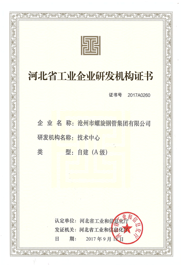 河北省工業(yè)企業(yè)研發(fā)機(jī)構(gòu)證書